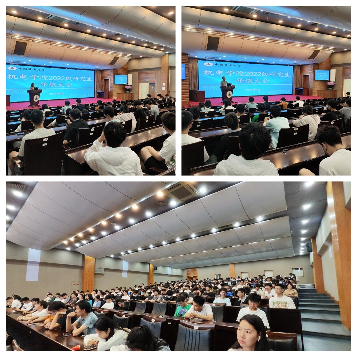 为加强研究生日常管理,引导和帮助2022级研究生合理规划学业,激励学生以最饱满的精神状态投入到接下去的研究生学习和生活中,6月5日,机电工程学院在闻厅二楼报告厅组织召开2022级研究生年级大会,学院党委副书记杨玉书、党委委员蔡慧、研究生秘书李梅和2022级研究生辅导员陈霞红出席会议,2022级全体研究生参加会议。