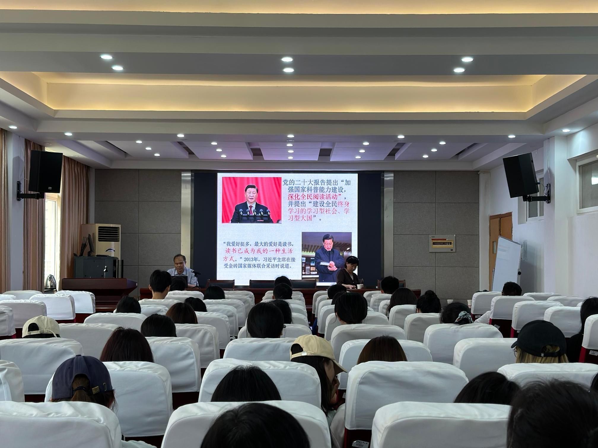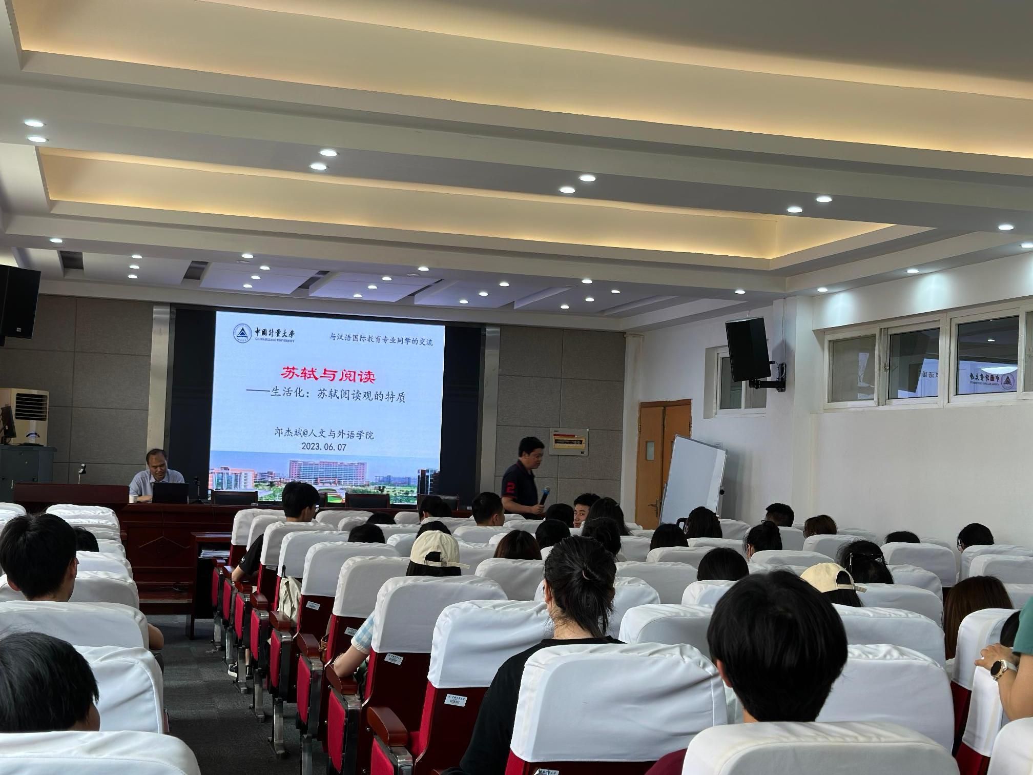 为扎实推进学习贯彻习近平新时代中国特色社会主义思想主题教育,深入推进服务育人,6月7日中午,在格致中楼307会议室,图书馆(档案馆、博物馆)党总支书记郎杰斌应邀为人文外语学院汉语国际教育专业研究生作了题为“苏轼与阅读——生活化:苏轼阅读观的特质”的学术讲座,人文与外语学院国际文化传播系主任刘美兰主持会议,汉语与东西方文化交流研究所所长王华勇博士做了点评。