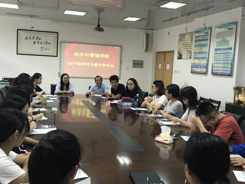 9月20日,经管学院在格致南楼307举行2017级研究生入学教育大会。学院副院长王晓军、党委副书记王小丹、研究生教学秘书吴旭东、辅导员汪波和全体2017级研究生参加了会议,会议由研究生教学秘书吴旭东主持。