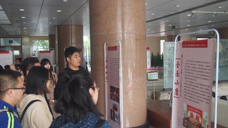 同学们在展览现场,认真阅读、回顾、学习了中国共产党成立96年来18次党代会的发展历史——党的历次代表大会都是党在中国革命、建设和改革的重要或关键时刻召开的,是党为回答和解决思想理论、方向道路、方针政策问题而召开的。一次党的全国代表大会,就是一座路标,通过现场观看图片、文献资料等方式,我校研究生领略了中国共产党在革命、建设、改革等不同时期的华丽篇章,更加直观、深刻的了解了党史,增强了党员的党性观念,对即将开幕的党的十九大充满期待。