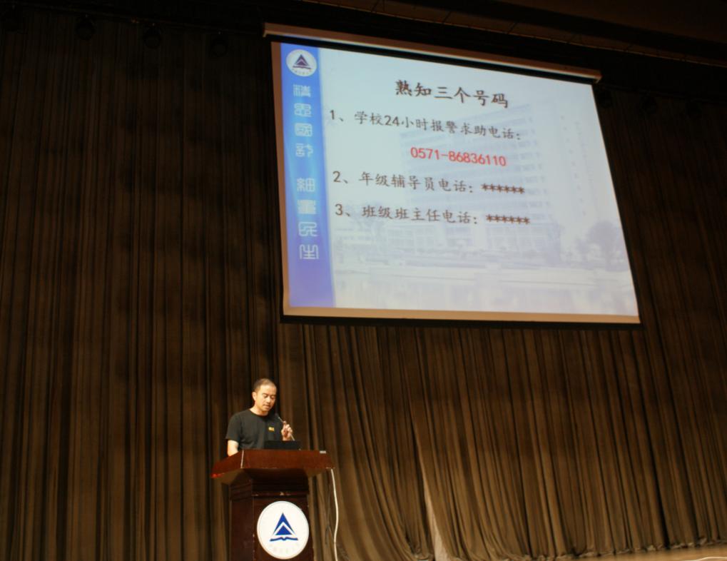 学校保卫处副处长王瑜从校园治安、实验室安全、寝室安全、交通安全、消防安全、观潮安全和防盗防骗等方面进行了安全教育专题讲座。他反复提醒大家牢记校园安全电话86836110,告诫研究生在学习生活中要明白基本生活常识、树立正确的消费观和安全意识,“不要相信天上会掉馅饼”;如果出现校园安全事件,一定要及时跟老师、学院和保卫处联系。