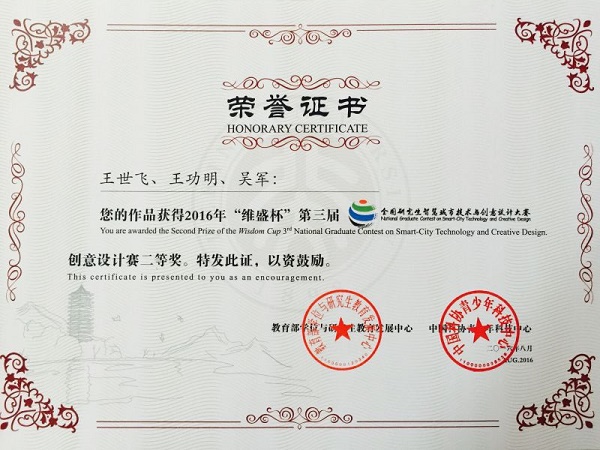 2016年8月26-28日,第三届全国研究生智慧城市与创意设计大赛决赛在北京大学举行,我校计测学院研究生王世飞、王功明、吴军在导师毛佳妮的指导下,携作品《基于低品位余热多效回收利用的半导体海水淡化系统》参加了全国决赛。