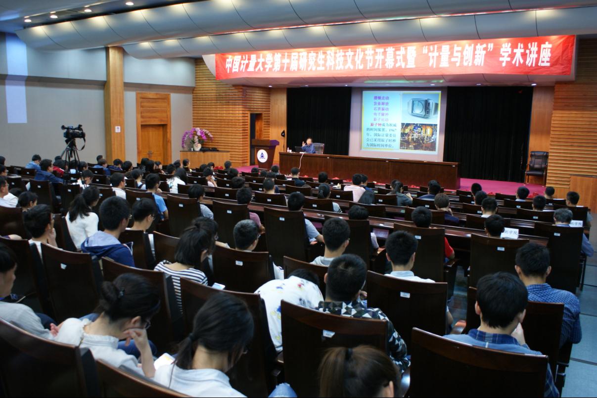 5月17日,我校第十届研究生科技文化节开幕式在闻厅二楼报告厅举行,校长林建忠教授应邀以《计量与创新》为题与广大研究生进行交流。