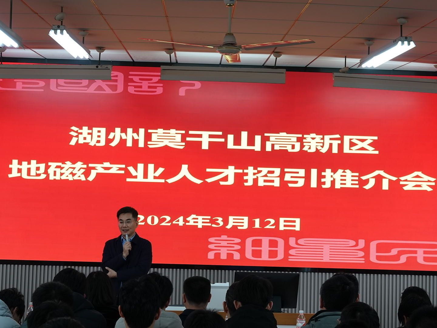 3月12日以“才聚莫干山∙共创地信城”为主题的湖州莫干山高新区地磁产业人才招引推介会在我校举行。副校长王斌锐,湖州莫干山高新区党工委委员、管委会副主任章洪春,德清县人力资源和社会保障局党组成员、副局长吴伟昊,学校就业指导中心主任高秋艳,地磁研究院等招聘单位负责人出席推介会,活动由研究生工作部常务副部长邹志刚主持。两地双方合作举办此次活动旨在借助我校学科优势和人才资源为湖州莫干山高新区地磁产业发展注入新的活力,同时依托园区产业需求为毕业生提供更多的就业机会和发展空间。
