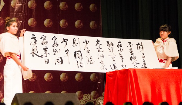 晚会表演在舞蹈《come alive》中拉开序幕,台上舞蹈充满动感,台下观众情绪高涨,微信墙不断跳出现场观众的互动;浙江财经大学研究生带来的器乐合奏《美丽的神话》,将观众带到遥远的过去,细细品位凄美的爱情;研究生导师李青教授和韩玲莉老师联袂演唱的《我像雪花天上来》魅力十足,舞者身姿优美,歌声久久回响,掌声不绝于耳。我校各二级学院研究生在学习之余精心排练的朗诵《少年中国说》、小品《我们的研究生生活》和《不斩来使》、舞蹈《威廉小鬼舞》和《fighting boys and girls》等节目也赢得了场下观众的掌声与欢呼,展示了我校研究生们的风采;黑光剧《the black party》和相声《满腹经纶》则让大家体会了现代科技的曼妙和中国传统艺术的魅力。即将毕业的研究生钮峰更是现场挥毫泼墨书写《少年中国说》,鼓励大家为实现中国梦而努力奋斗。