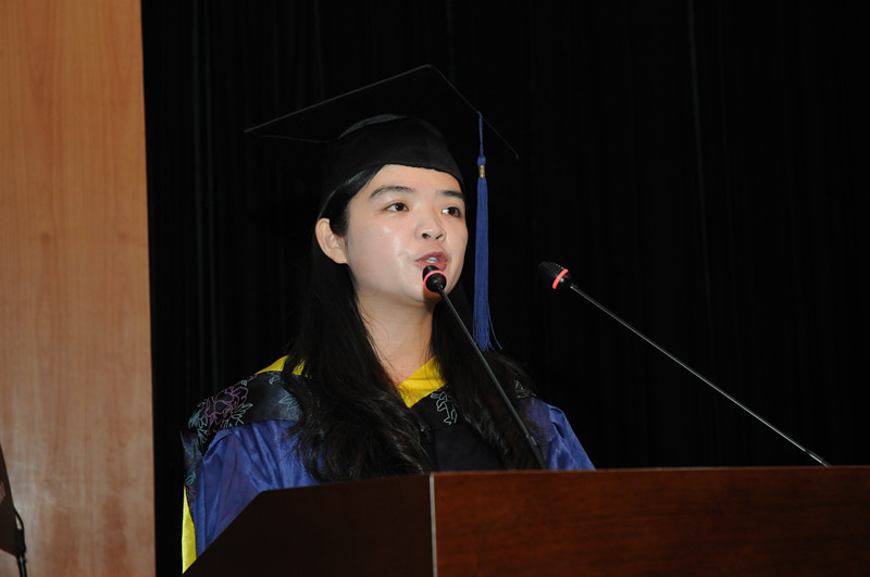 信息学院研究生魏莎莎代表全体硕士学位获得者对母校和老师们的辛勤培育表示衷心的感谢和崇高的敬意。他们表示将谨记母校的教诲,始终秉承“精思国计,细量民生”的校训,锐意进取,不断创新,为国家和社会的发展做出自己的贡献。