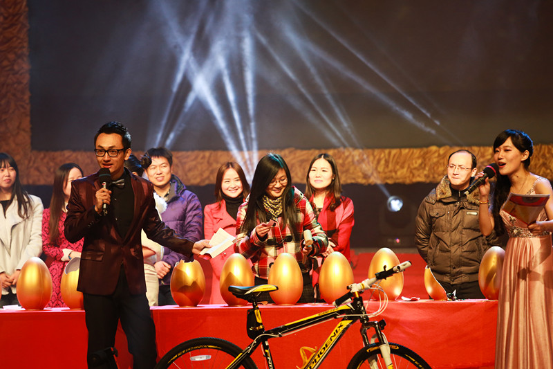 晚会中场的互动环节是最大的亮点,来自各二级学院的老师代表为同学们送上新春的祝福,年年岁岁,他们一直陪伴我们成长。最紧张、最刺激的就是老师抽奖环节了,场下的观众期待着幸运女神的降临,有失落、有期望,被抽中的同学兴奋地和老师拥抱,时光定格在每一个欢乐的画面。光电学院研究生带来的灯光秀《一树花开的时光》让人眼前一亮,画布上闪亮的灯光诉说着过去的故事,零星的光电凝聚成灿烂的篇章;舞蹈串烧《舞动青春》节奏迅速且风格多变;林建忠校长应邀倾情演唱《弯弯的月亮》,声音质朴、动人,赢得了现场所有人的欢呼和呐喊,随后林校长与现场同学进行互动并祝全体研究生新年快乐。歌曲联唱《唱·享计量》无疑是引爆现场的最后一把火,激情的摇滚释放着心中的热情,这舞台的绚烂超乎想象。