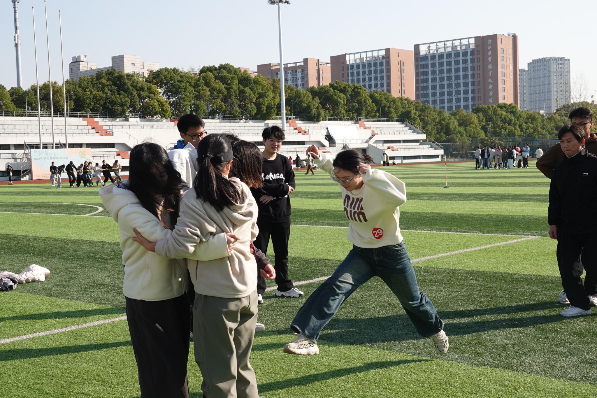 12 月 15 日,学校“趣运领航,‘研’路翱翔”研究生趣味运动会在东区操场举行。活动由研究生工作部主办,校研究生会和机电学院研究生会承办;活动吸引了14个学院的杭州和义乌34 个参赛队伍的300余名研究生参与。研究生工作部常务副部长邹志刚及各学院研究生管理相关老师到场未研究生加油助威。