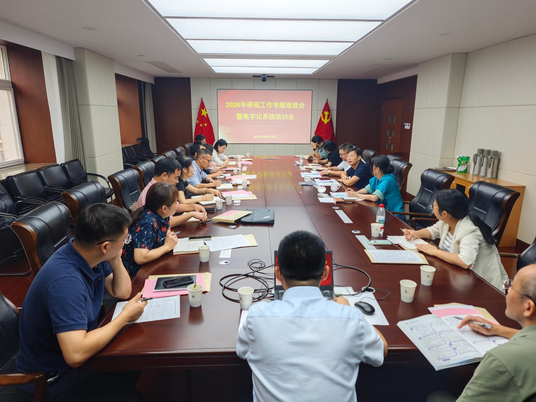 为统筹推进2026年硕士研究生招生工作,贯彻落实教育部最新招生政策,全面提升研究生教育数字化管理效能,近日,学校分两场召开研究生招生工作专题推进会暨数字化系统培训会。副校长王新庆出席会议,校院两级研究生招生工作分管领导,以及研究生教育相关工作人员分别参加会议。