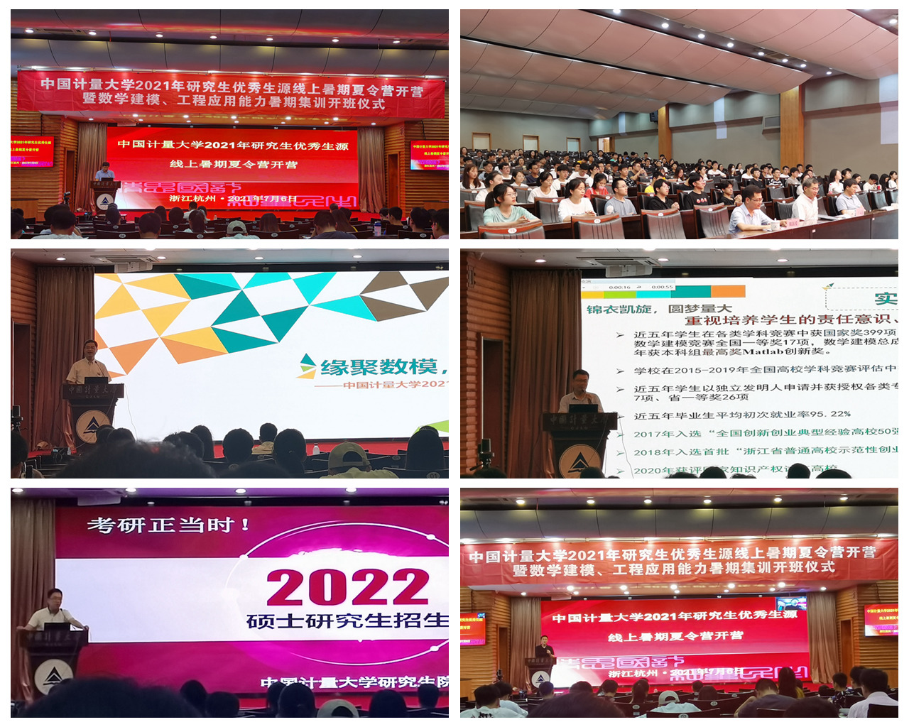研究生院李运堂在致辞中,向各位同学的积极参与表示热烈欢迎,鼓励大家珍惜学习机会,认真听课、积极实践、热烈交流、细心体会,使个人的学术视野进一步开阔,工程应用能力进一步提升。他肯定了我校数学建模、航模锦标赛、智能车竞赛、电子竞赛等取得的优异成绩,介绍了学校概况、学科优势与特色、奖助学金政策等相关情况,鼓励优秀生源一志愿报考中国计量大学硕士研究生。