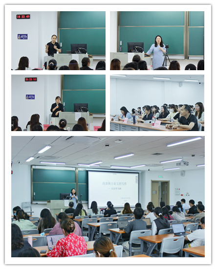 范晓宇教授通过数本介绍写作方法的参考书目开启了《浅谈硕士论文的写作》的报告。她以学位论文盲审评阅标准为脉络,讲述了标题、摘要、参考文献、研究方法等方面需要注意的评阅要点,以论文评阅意见清晰地反推论文质量要求。紧接着对同学们遇到的常见问题“资料不足能不能写?”“找不到案例问题点?”“难以切入正题?”等做了回答,使同学们茅塞顿开、豁然开朗。