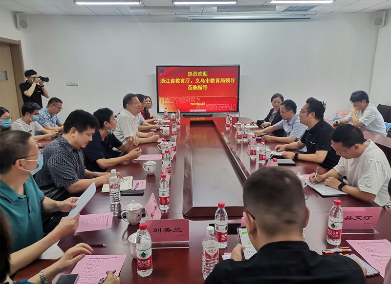 6月2日,浙江省教育厅调研员吴振辉一行、义乌市教育局教育研究院副院长刘玮一行来我校义乌高等研究院调研交流。校党委委员、党委研工部部长、现代科技学院党委书记张勇,研究生院院长王新庆、研工部常务副部长邹志刚、研究生院副院长张艳及各学院大类班级负责人代表参加座谈。