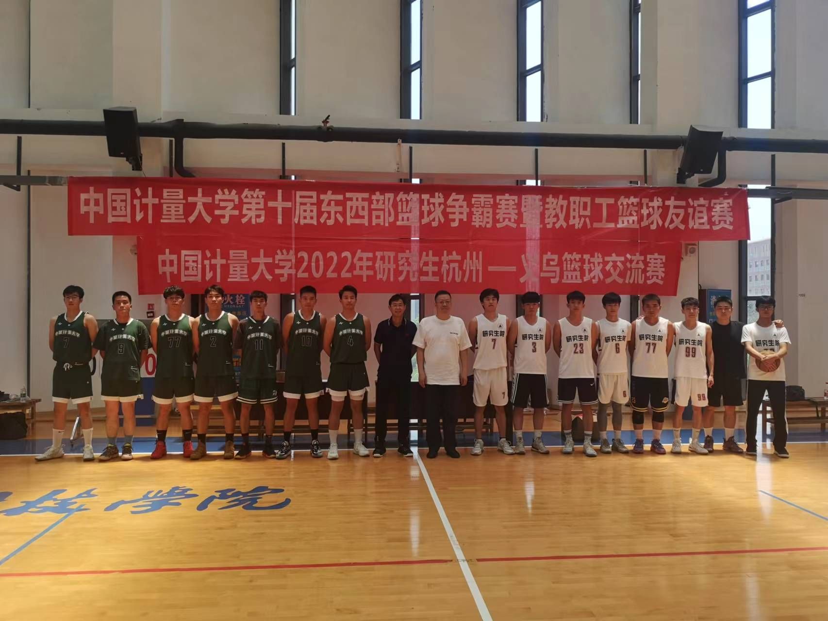 为加强杭州、义乌校区研究生以及和教师的交流与联系,6月8日研究生院组织杭州研究生篮球赛冠军队、义乌研究生篮球赛冠军队和教职工篮球队在义乌校区开展交流比赛。校党委委员、研工部部长、现代科技学院党委书记张勇,研究生院院长王新庆、研工部常务副部长邹志刚参与了活动。