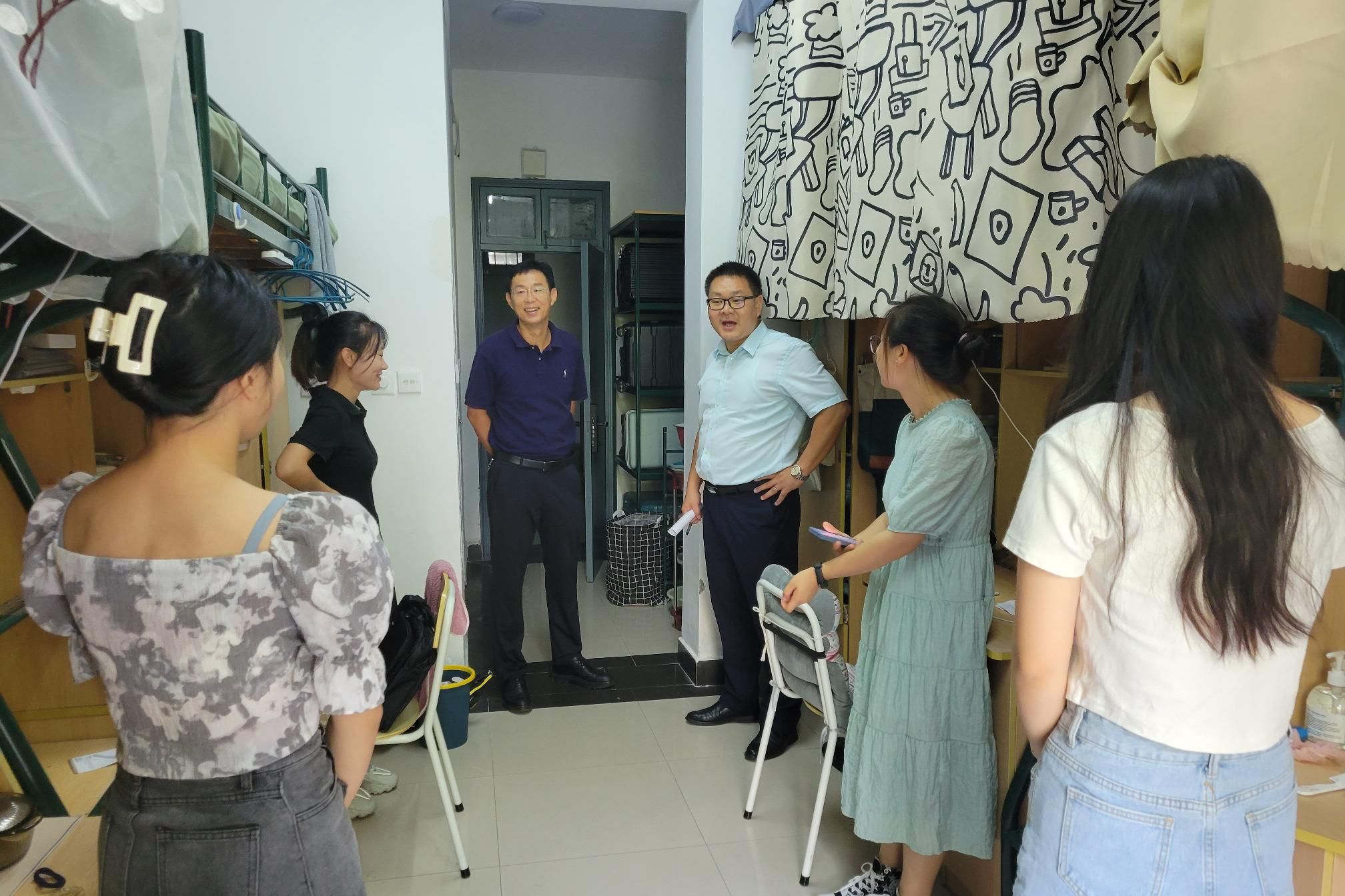 9月1日中午,研究生院院长王新庆、研工部常务副部长邹志刚到学校西生活园区2号楼和东生活园区2号、7号、8号楼走访看望了2022级研究生新生,深入了解同学们的学习、生活状况,帮助他们调整心态,尽快适应新阶段学习生活,并代表学校送去温暖和关爱。