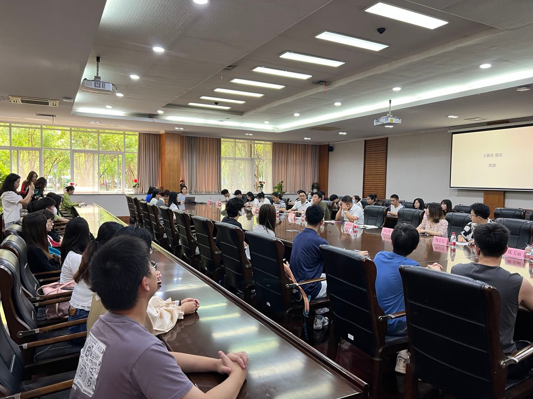 王新庆就学科特色、培养理念、高质量发展等方面介绍了学校研究生教育总体情况,对新一届研究生会表示热烈欢迎,期待其在原有工作基础上,及时提炼经验并理清下一步工作思路,进一步推动研究生会的建设发展。他指出,研究生会是一个展示自我,服务同学的大舞台,研会成员是学校研究生集体的重要代言人,要时刻牢记“全心全意为广大研究生服务”的使命和“争做有理想、有担当、有作为学生干部”的初心。