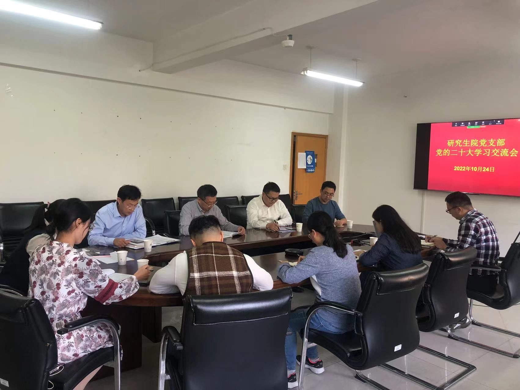 10月24日,副校长俞晓平以普通党员身份参加研究生院党支部党的二十大精神学习会,会议由研究生院党支部书记王新庆主持,杭州和义乌高等研究院两地党员通过线上线下方式参加了会议。