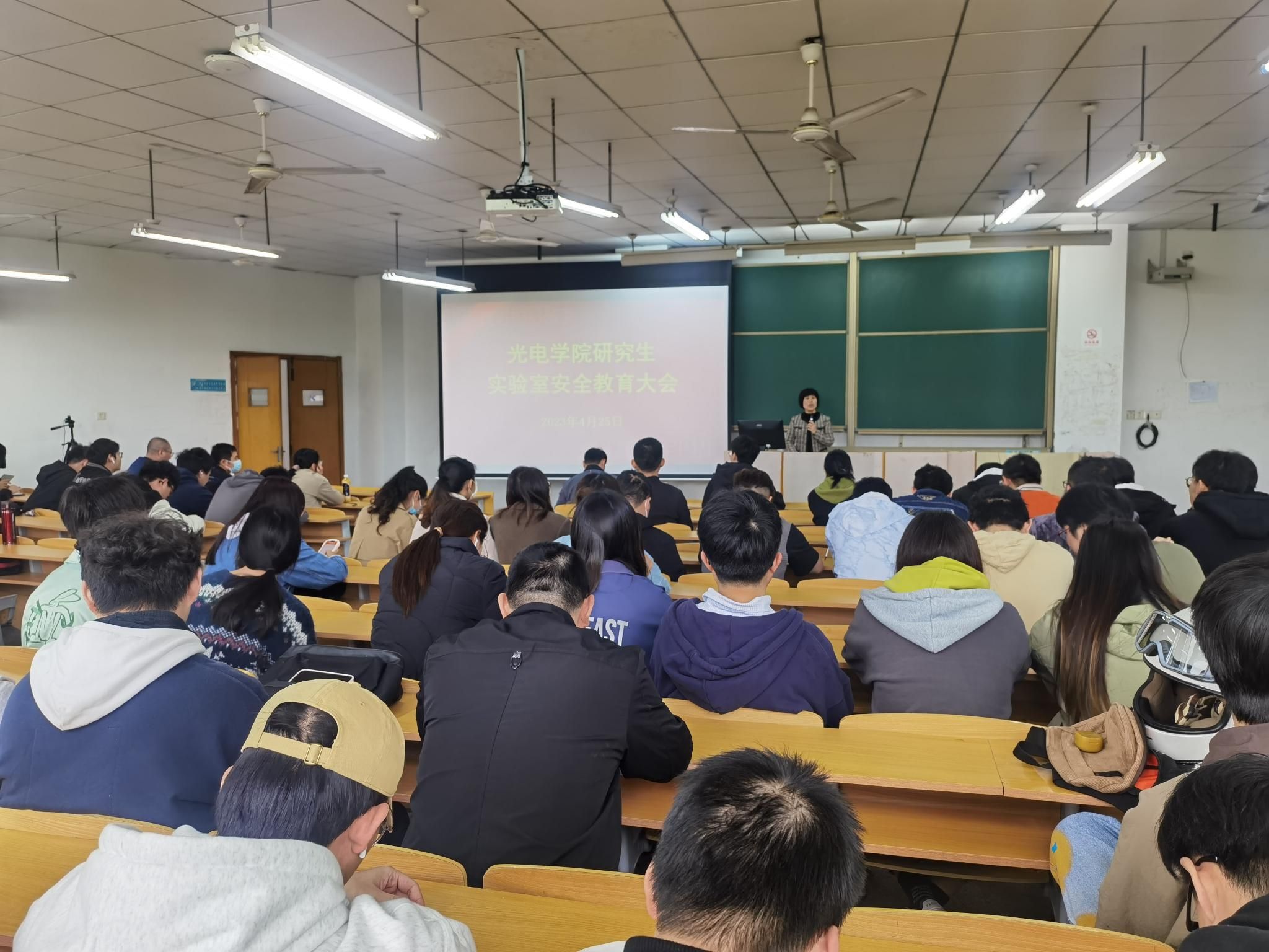 为全面贯彻落实学校关于做好2023年实验室安全检查工作的通知要求,切实强化学院实验室安全管理,加强实验室安全文化建设和安全教育培训。4月25日下午,光电学院组织召开研究生实验室安全教育大会,校实资处王攀峰老师,光电学院实验室管理中心全体老师、研究生工作管理老师和研究生参加了会议,会议由学院副院长李晨霞主持。会上,李晨霞根据近期学院实验室检查情况向与会师生强调了实验室安全相关规范及注意事项。