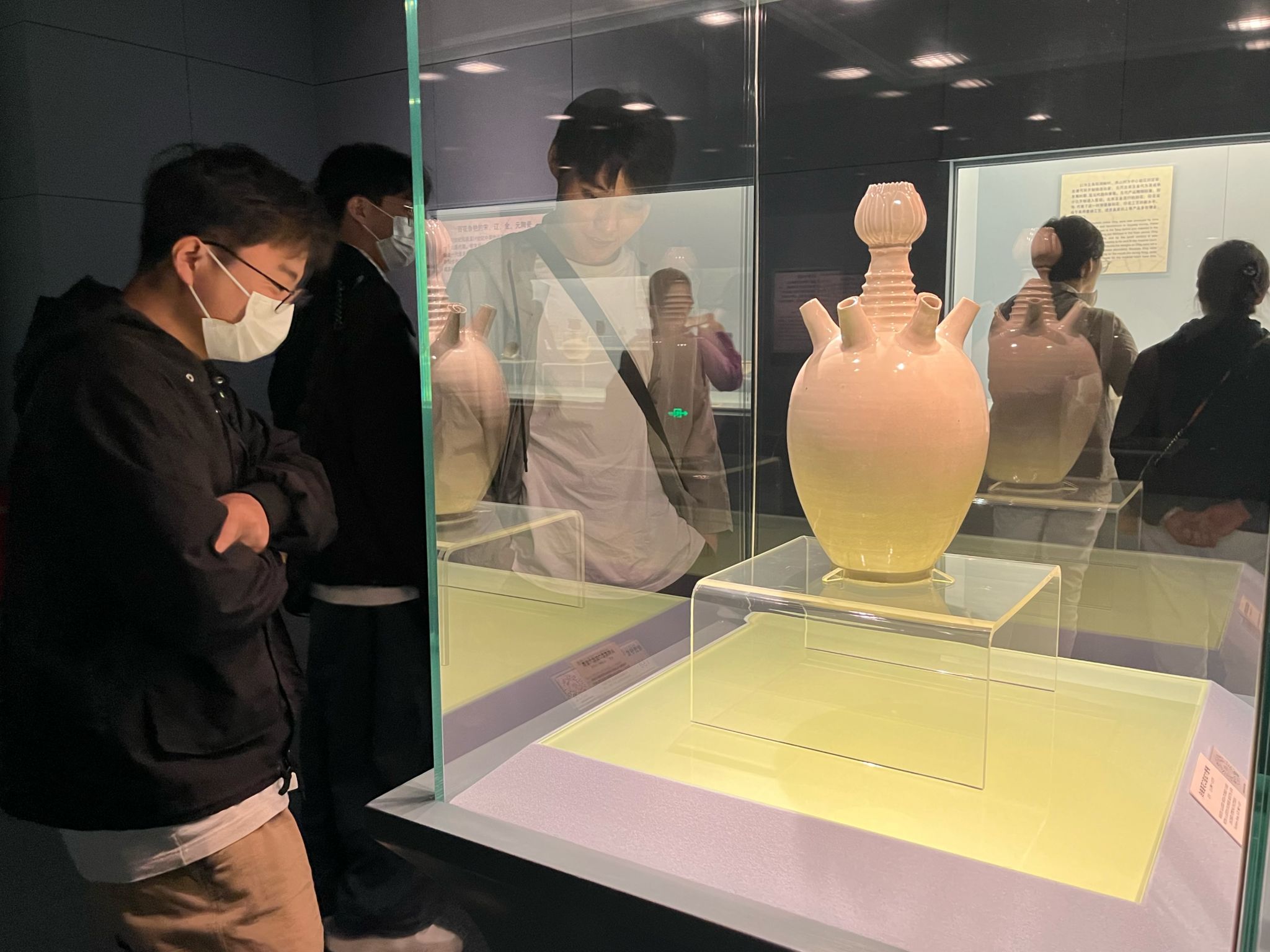 随后,同学们在讲解员的带领下参观了上海博物馆。藏品以时间为序,古朴精美的青铜器皿,栩栩如生的陶瓷人物,彰显传统艺术的书法绘画……一件件珍贵的文物,既是见证历史的文化遗存,也是滋养精神血脉和文化自信的宝贵财富。