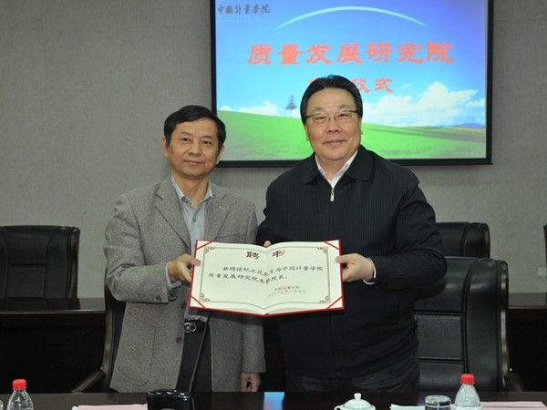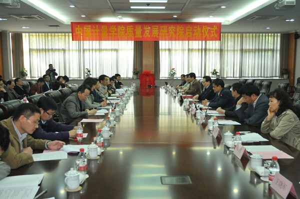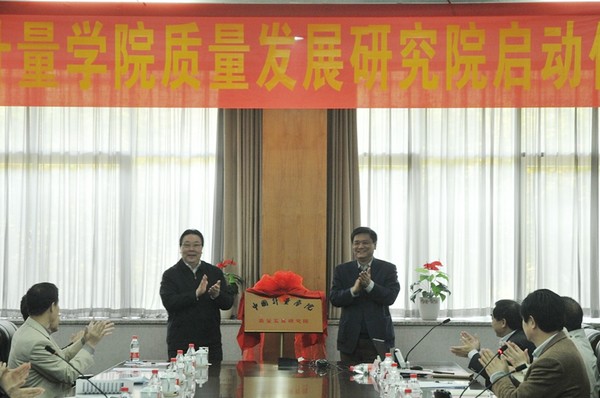 2013年4月12日,我校在闻厅一楼会议室隆重举行中国计量学院质量发展研究院启动仪式。中国标准化协会理事长纪正昆,中国计量学院党委书记胡建成、校长林建忠、副校长宋明顺,浙江省质量技术监督局、浙江省标准化研究院、杭州市质量技术监督局等相关单位部门负责人,以及我校相关职能部门负责人和质量发展研究院骨干教师参加了启动仪式。启动仪式上林建忠校长为纪正昆理事长颁发了质量院名誉院长聘书,胡建成书记与纪正昆理事长一同为质量发展研究院揭牌,启动仪式由副校长宋明顺主持。