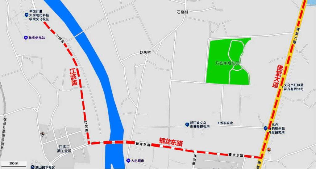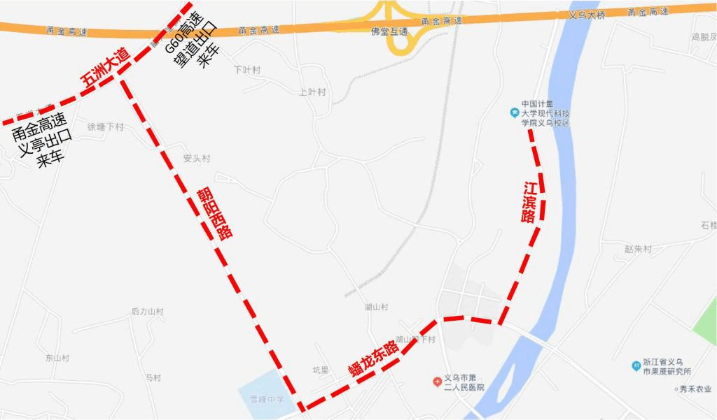甬金高速义亭出口:经上佛路、五洲大道、朝阳西路、蟠龙东路、江滨路入校(见图2)。