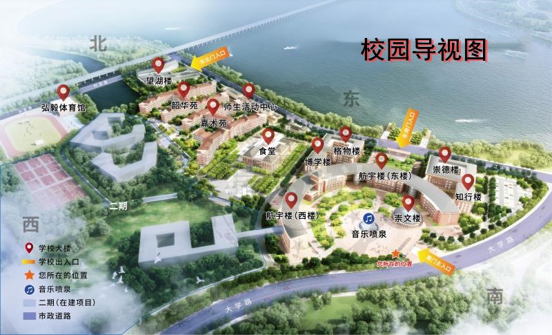 G60高速望道出口:经疏港快速路、五洲大道、朝阳西路、蟠龙东路、江滨路入校(见图2)。