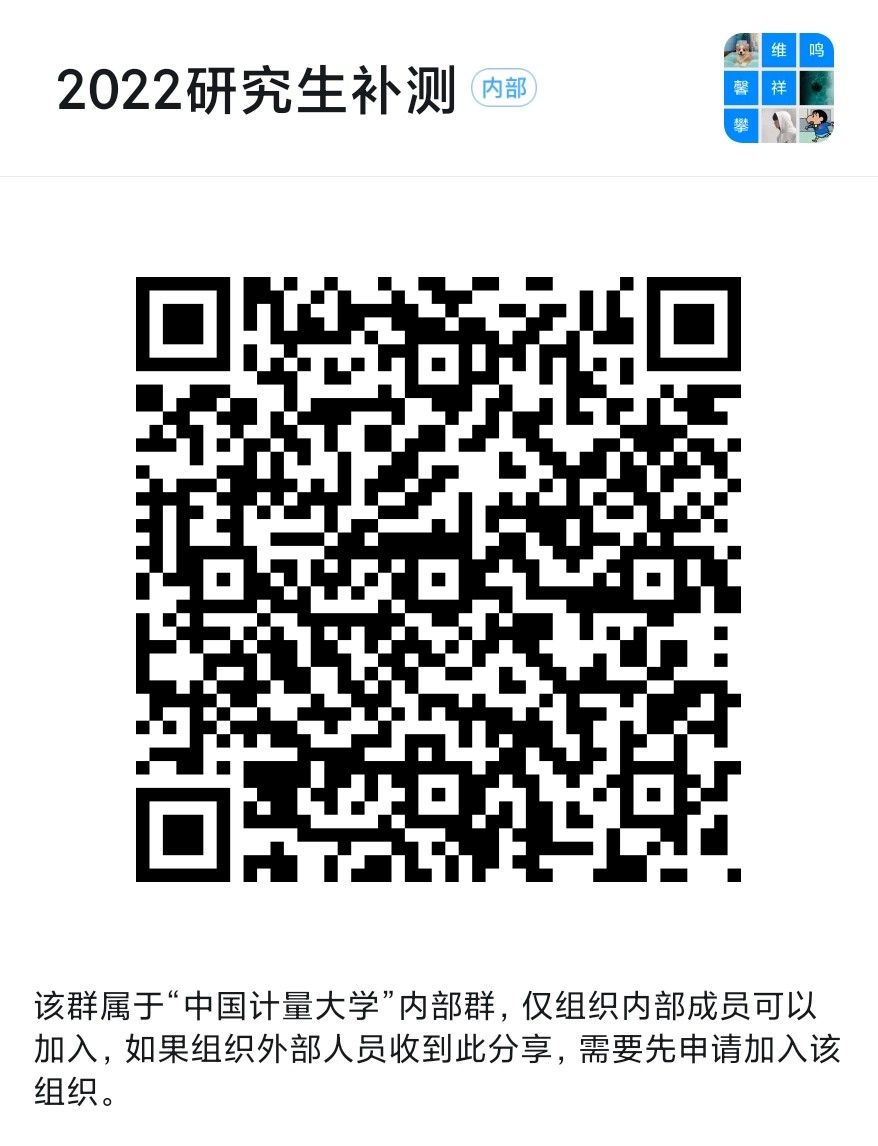 参加测试同学加入“2022研究生补测”钉钉群(二维码如下),按照群内的指示完成测试,达到连续7天累计6万步或一天达到2万步为合格。