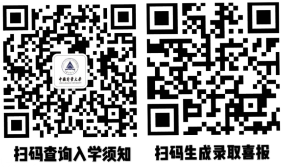 扫描如下左侧二维码浏览微信公众号5月30日消息,可查看《入学须知》。扫描如下右侧二维码,可生成录取喜报和查询录取通知书挂号信编号信息。